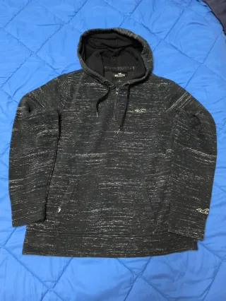 Sudadera con capucha y cremallera parcial de la marca Hollister. - Diseño jaspeado en tonos negros y grises. - Logo de Hollister en el pecho. - Bolsillo tipo canguro. - Detalle del logo en el puño.
