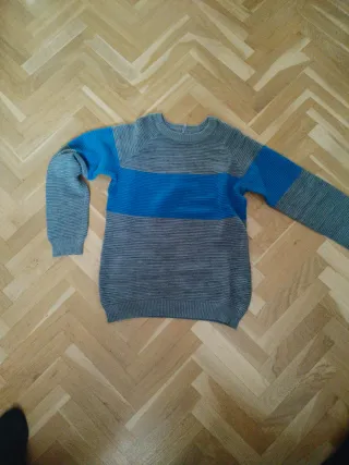 Sudadera de rayas azul, gris y blanco