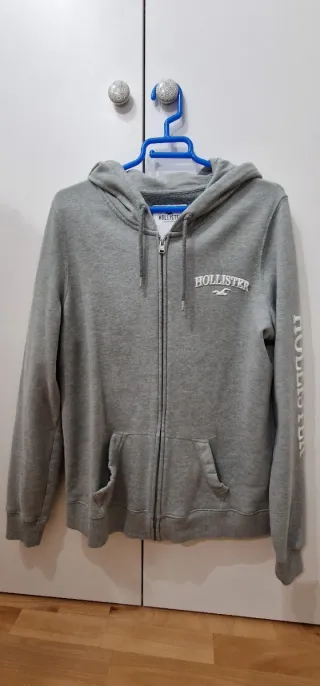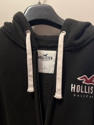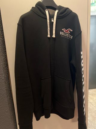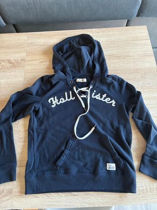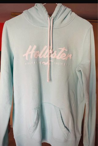 Sudadera con capucha y bolsillo. Original de Hollister, con logo.