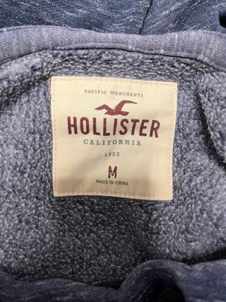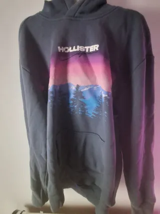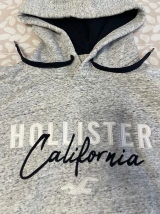 Sudadera con capucha de la marca Hollister. - Diseño con logo de Hollister y California en el pecho. - Bolsillo tipo canguro. - Cordones ajustables en la capucha. Tiene la zona frontal de la capucha con el color un poco bajado; no se nota mucho, pero lo advierto expresamente. De ahí el precio.