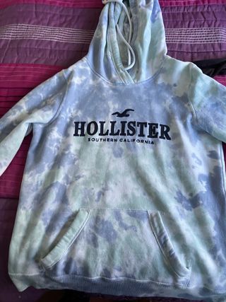 Sudadera con capucha y estampado tie-dye en tonos azules y verdes. Presenta un diseño moderno y cómodo. - Logo de Hollister en el pecho. - Bolsillo canguro frontal. - Capucha con cordones ajustables. Talla S Susadera rosa hollister talla L Sudadera up talla 16 Lote por 27€ Cada una de hollister por 12€ La de up por 7€