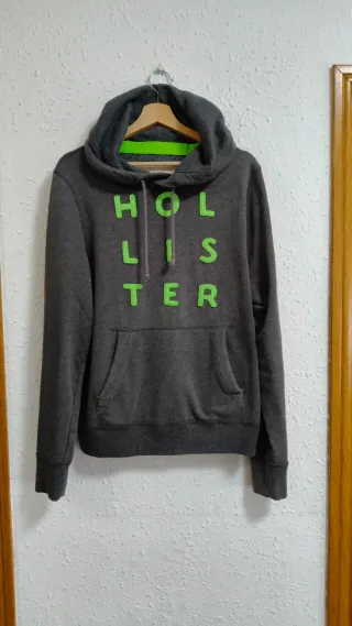 Sudadera con capucha de la marca Hollister. Usada poco y en perfecto estado. Color: Verde claro Talla L Ancho:58 Largo:70