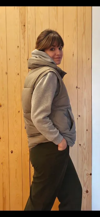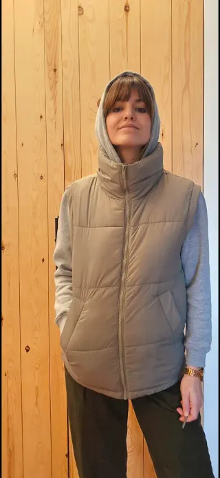 Chaleco acolchado de la marca Hollister en color verde. - Diseño sin mangas. - Bolsillos frontales. -Sin capucha
