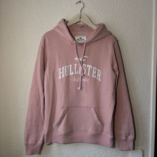 Sudadera con capucha de la marca Hollister. - Color rosa. - Talla S. - Diseño con logo y texto 'California'.