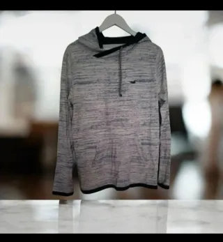 Jersey de manga larga de la marca Hollister. - Color gris jaspeado. - Pequeño logo de la marca bordado en el pecho.