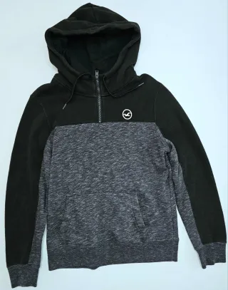Jersey de la marca Hollister. - Color negro y gris jaspeado. - Talla S. - Abrigo unisex con capucha - Sudadera para hombre o mujer