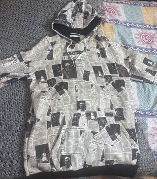 Sudadera con un diseño único inspirado en periódicos, con imágenes y titulares de Michael Jordan. - Estampado integral de temática deportiva. - Capucha con cordones. - Bolsillo frontal tipo canguro.