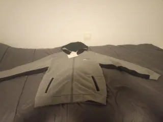 Conjunto deportivo Jordan compuesto por sudadera con capucha y pantalón. - Sudadera gris con detalles en negro. - Pantalón gris con detalles en negro. - Cierre de cremallera en la sudadera. - Bolsillos en la sudadera. Nuevo sin estrenar, talla 13-15 años 163-175 cm