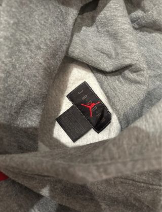 sudadera Jordan con uso talla XL pero tallaje da pequeño, como una M, tiene un desperfecto en la manga pero no traspasa, el jordan esta todo bordado