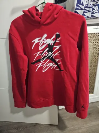 Sudadera con capucha de la marca Jordan en color roja👍🏼 - Diseño con bolsillo canguro.😊 - Cordones ajustables en la capucha. - Logo de Jordan bordado en el pecho. - buen estado ✅ . - sin rotos ni manchas.✅ - con desgaste de uso en el color🟥
