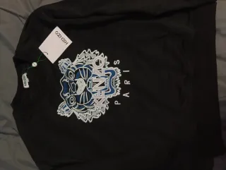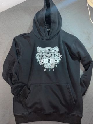 Sudadera Kenzo negra con el icónico diseño del tigre bordado. - Diseño del tigre en azul. - Etiqueta original incluida. - Bolsa incluida. - Talla L de niño, S-XS de hombre. Fue regalo, no sé si es original (175€) Así que lo dejo a la mitad (90€) Venta en persona. Algo negociable.