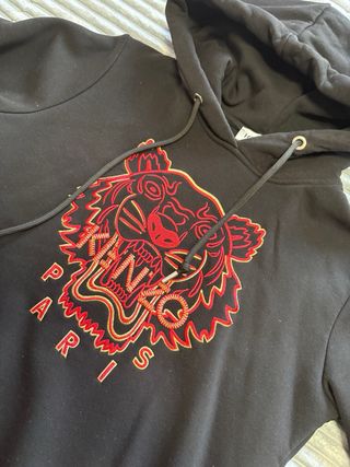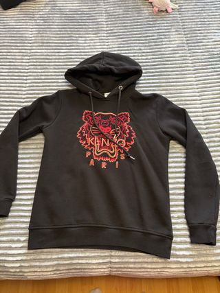 Sudadera con el icónico estampado de tigre de Kenzo. En perfecto estado - Diseño frontal con tigre y logo. - Capucha con cordones. - Bolsillo tipo canguro.