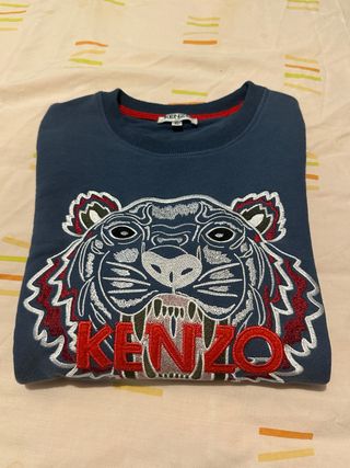 Usada pero bien cuidada. Verdadera Sudadera Kenzo con el icónico diseño del tigre bordado en la parte frontal. - Diseño del tigre con detalles bordados en varios colores. - Cuello redondo y manga larga. - Acabado clásico en puños y bajo.