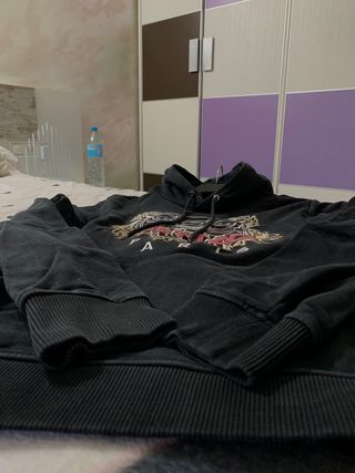 Sudadera negra con un llamativo diseño de tigre bordado en la parte frontal. Talla M pequeña( Parece una S) - Cuello redondo. - Puños y bajo acanalados. - Detalle de PARIS bordado en la parte inferior del tigre. Precio negociable✅✅ Envios rapidos👌🏽👌🏽