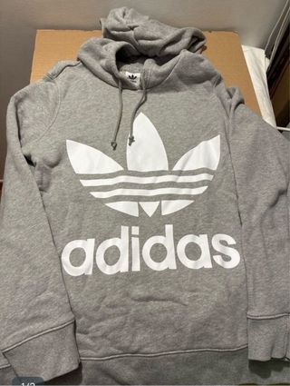 Sudadera con capucha de Adidas en color gris. Presenta el icónico logo Trefoil en blanco en la parte delantera. - Logo Trefoil grande. - Capucha con cordones. - Bolsillo tipo canguro. Y sudadera Levis blanca