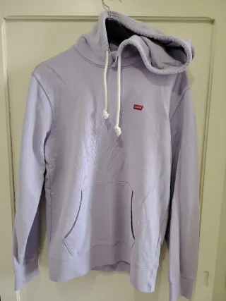 Sudadera con capucha Levi’s original en color lila pastel muy actual. Talla S (modelo Standard). Algodón de alta calidad, cómoda y perfecta para uso diario. ✔ Logo Levi’s bordado en el pecho ✔ Bolsillo frontal tipo canguro ✔ Muy buen estado, sin manchas ni roturas ✔ Ideal para primavera, otoño e invierno Perfecta para estilo casual, streetwear o outfit urbano. 💬 Precio algo negociable