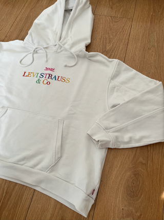 Sudadera blanca de Levis con capucha. Talla M, aunque es bastante ancha, tipo oversize. Nueva, sin estrenar.