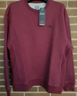 Sudadera marca Levis nueva sin estrenar con etiquetas, talla S relaxed fit heavyweight (da algo más de talla) 100% algodón punto grueso premium, original, color burdeos. Medidas: 57 cm de ancho de costura a costura bajo la axila, largo 71 cm, largo de manga desde la costura del hombro 57.5 cm