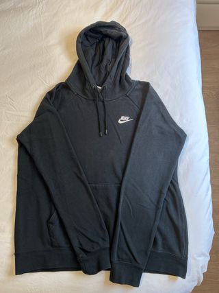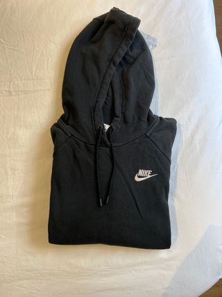Vendo esta sudadera básica de Nike en color negro. Es un modelo súper cómodo y que no pasa de moda, pega absolutamente con todo. Es una talla S y sienta genial, ni muy ancha ni muy corta. El cuello redondo y el ajuste son súper clásicos.El tejido es suave y abriga lo justo para el día a día.Solo tiene un par de manchistas. La vendo simplemente porque apenas me la pongo ya. Hago envíos rápido por si la necesitas pronto. Si la compras con los pantalones jogger grises te hago oferta.¡Cualquier cosa me dices! :)