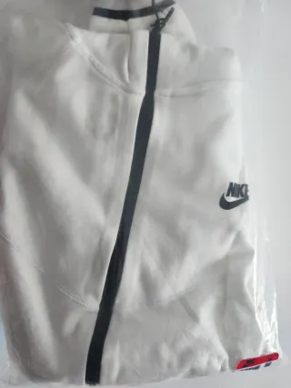 Chaqueta deportiva Nike Tech de color blanco. Diseño moderno y cómodo. - Cremallera frontal completa. - Capucha ajustable. - Bolsillos laterales. *Producto procedente de lotes,sin estrenar,SIN ETIQUETA,con una pequeña mancha sin importancia*