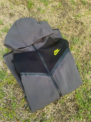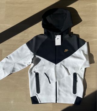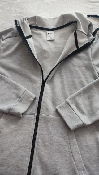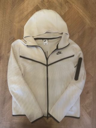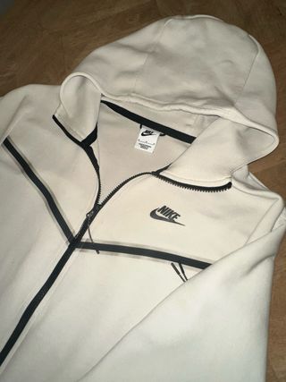 Vendo sudadera Nike Tech Fleece original con cremallera completa. Color beige/crema con detalles en negro, uno de los modelos más buscados de Nike por su diseño moderno y su comodidad. 📌 Características: • Modelo Nike Tech Fleece • Cremallera completa frontal • Capucha ajustada • Bolsillo con cremallera en la manga izquierda (característico del modelo) • Logo Nike en el pecho • Detalles en negro en cremalleras y costuras • Tejido Tech Fleece, ligero pero abriga muy bien • Ideal para uso diario o estilo streetwear 📌 Estado: En buen estado general, con signos normales de uso pero sin roturas ni daños importantes.