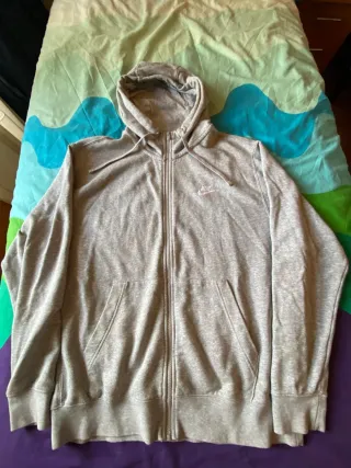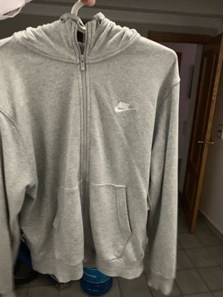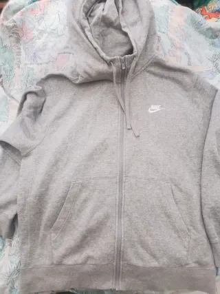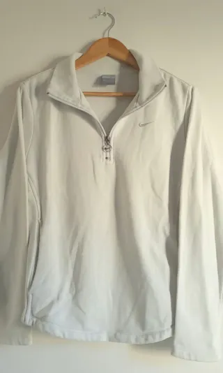 Sudadera Nike gris –media cremallera Sudadera Nike original en color gris, con diseño minimalista y logo bordado en el pecho. Modelo con media cremallera y cuello alto, muy cómoda para uso diario. - Marca: Nike - Color: Gris - Logo Nike bordado - Cuello con media cremallera - Tejido cómodo y suave Estado muy bueno, bien cuidada y sin apenas uso.✅ Perfecta para llevar con vaqueros, chándal o ropa deportiva.👖 Si necesitas más fotos o información, puedo enviarlas (preguntar sin compromiso)