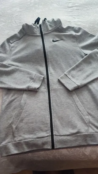 Chaqueta deportiva con capucha y cierre de cremallera. talla S pero un poco larga - Logo de la marca bordado. - Bolsillos frontales. - Cordones ajustables en la capucha. #tech #nike #deporte
