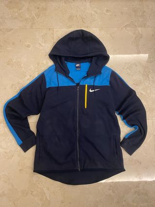 Sudadera con capucha y cremallera completa Nike original. Como nueva también a buen precio que no se te escape la oportunidad y cómprala ya! ⭐️ - Diseño con paneles de diferentes colores en mangas. - Logo de Nike bordado en el pecho. - Múltiples logos de Nike en la manga izquierda. - 100% algodón.