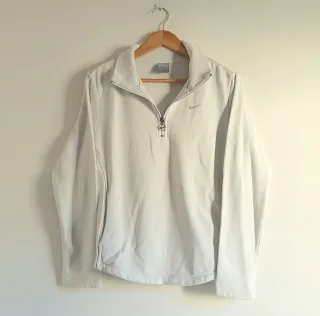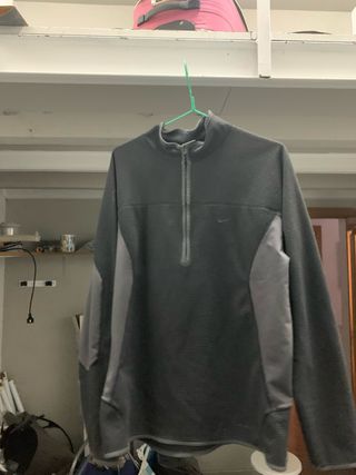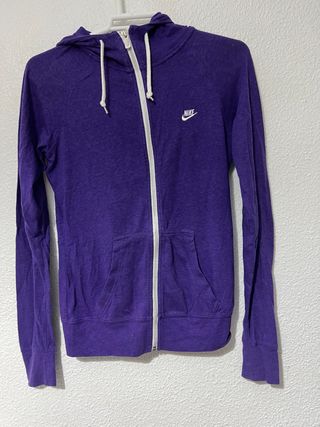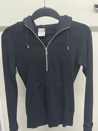 Sudadera deportiva Nike. - Diseño de media cremallera. - Bolsillos con cremallera. - El tallaje es XS pero queda olgada y yo utilizo la S y me viene bien. - Es fina para hacer deporte o tambien para vestir comodo.
