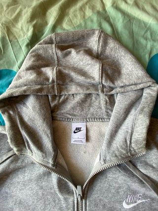 Sudadera con capucha de la marca Nike. - Color gris jaspeado. - Logo de Nike bordado en el pecho. - Diseño con cremallera y capucha. - Detalles en las mangas.