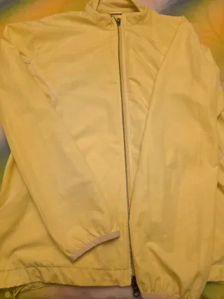 Chaqueta técnica de color amarillo, ideal para actividades al aire libre. - Diseño cortavientos. - Cierre de cremallera frontal. - Cuello alto. Detalles reflectantes Bolsillos con cremalleras Rejilla ventilación
