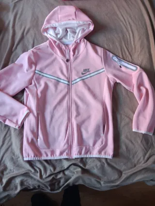 Chaqueta con capucha y cierre de cremallera completa. La chaqueta está nueva solo que la cremallera no cierra, pero se podrá arreglar fácil - Bolsillos frontales. - Logo de Nike en el pecho. - Puños y cintura elásticos.