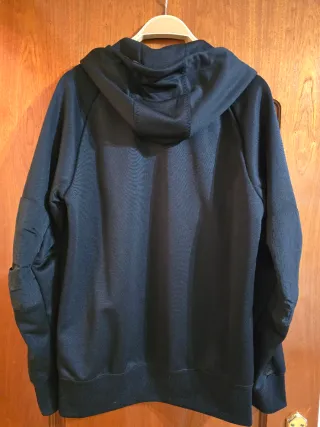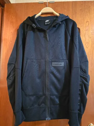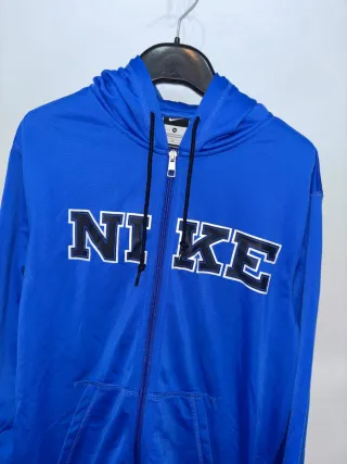 Sudadera con cremallera completa y capucha. Talla L. Tiene muy pocos usos y está en perfecto estado. Se vende porque me queda grande tras bajar de peso. Me costó 89,99 en tienda oficial de Nike. - Logo de Nike en el pecho. - Puños y cintura elásticos. - Capucha con cordones ajustables.