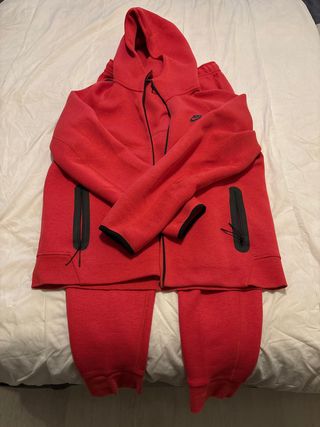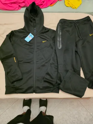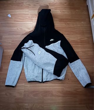 Chándal nike tech en buen estado, es verdadero la parte de abajo está más desgastada q la chaqueta pero está bien, la chaqueta es talla M y el pantalón talla S - Sudadera con cremallera completa. - Bolsillos laterales en sudadera y pantalón. - Cintura elástica con cordón en pantalón