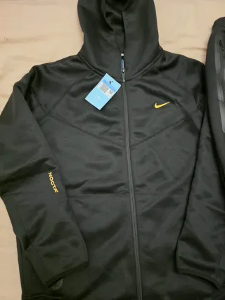 Conjunto deportivo de dos piezas. - Sudadera con capucha y cremallera completa. - Pantalón con cintura elástica y cordón. - Logos de Nike y NOCTA visibles.