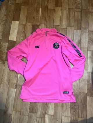 Chaqueta deportiva de Paris Saint-Germain con el logo de Nike. - Diseño en color rosa vibrante. - Media cremallera en la parte delantera. - Detalle del escudo del equipo. - Inscripción PARIS en las mangas.