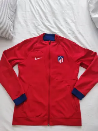 Chaqueta deportiva del Atlético de Madrid. - Diseño oficial del equipo. - Escudo del club en el pecho. - Logo de Nike. - Cremallera frontal.