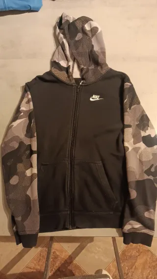 Sudadera original con capucha y cremallera completa. - Mangas y capucha con estampado de camuflaje. - Logo de Nike bordado en el pecho. -Talla XL de niño (equivale a una M de adulto)