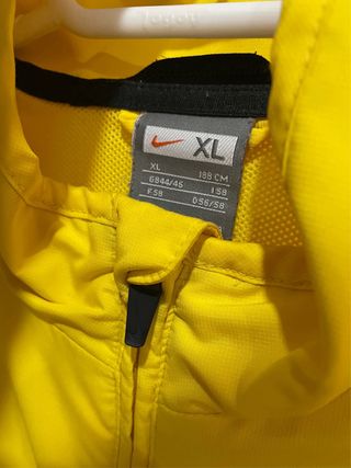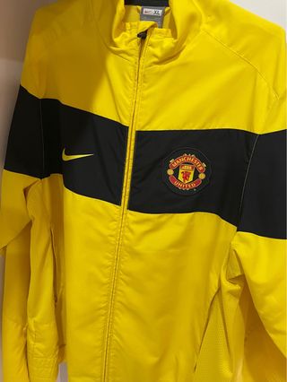 Chaqueta deportiva del Manchester United con el logo de Nike. - Diseño a rayas negras y amarillas. - Escudo del Manchester United y Nike bordado. - Cierre de cremallera frontal. Se vende por poco uso.