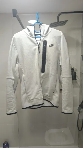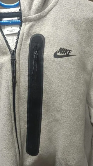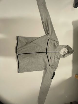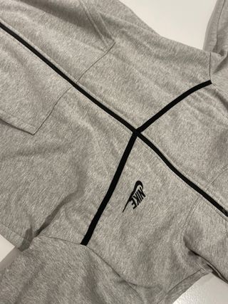 Nike tech con capucha y cremallera, completamente gris nuevo. - Diseño con detalles en contraste. - Bolsillos laterales. - Cremallera en la manga.