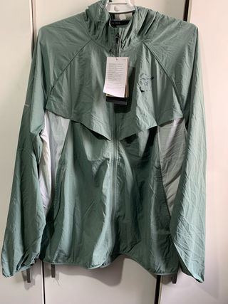 Chaqueta deportiva Nike Tech de color gris. Auténtica. Sin estrenar porque quité la etiqueta antes de comprobar la talla. - Diseño con cremallera completa. - Capucha integrada. - Bolsillos laterales. - Detalle de cremallera en manga.