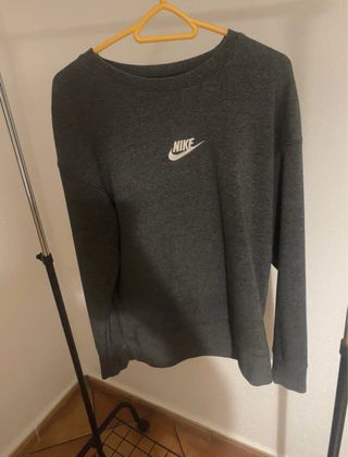 Sudadera gris con el icónico logo de Nike. - Diseño clásico y cómodo. - Logo de Nike en el pecho.