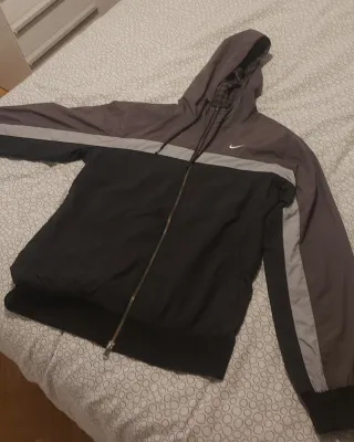 Chaqueta deportiva con capucha y cierre de cremallera completa. Presenta un diseño clásico y cómodo. - ⚠️Talla XL “niño” ( si eres una s/m te quedará muy bien, incluso una xs solo que te quedará más anchita) - Sin uso apenas, por lo que está en perfecto estado. - Logo de Nike bordado en el pecho. - Dos bolsillos frontales. - Puños y cintura elásticos.