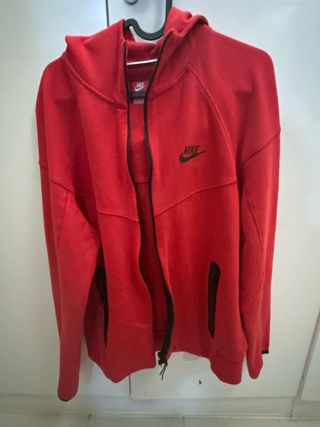 Sudadera con capucha Nike Tech en color rojo. Pantalon - Diseño con cremallera completa. - Bolsillos laterales con cremallera. - Logo de Nike en el pecho.