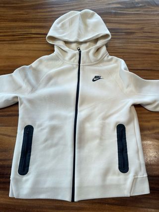 Sudadera con cremallera completa y capucha. - Logo de Nike bordado en el pecho. - Dos bolsillos laterales con cremallera. - Puños y bajo acanalados. -Parte de arriba dem nine tech color crema. - Envio en 24h📦 - Antes de ser enviada se planchara para que el cliente este satisfecho con el producto.