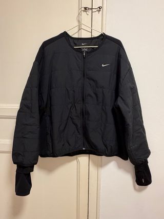 Chaqueta deportiva Nike en color negro. - Diseño acolchado. - Cuello redondo. - Cierre de cremallera frontal. - Puños elásticos.