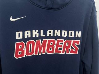 Sudadera con capucha de la marca Nike, con el diseño de Oakland Bombers. - Color azul marino. - Logo de Nike en blanco. - Estampado frontal Oakland Bombers en blanco y rojo. - Bolsillo canguro delantero.