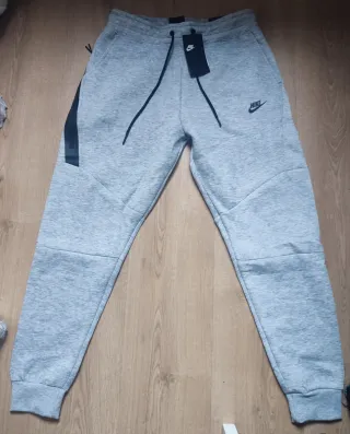 Lo vendo porque no me queda. Conjunto deportivo Nike Tech de color gris. - Diseño moderno con cremallera completa. - Capucha ajustable. - Bolsillos laterales. - Logo de Nike en el pecho.