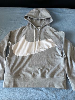 Sudadera con capucha Nike de color gris. Está en muy buen estado sin estrenar aún conserva la etiqueta de nueva con el precio de 64,99€ - Talla grande. - Capucha con cordón. - Bolsillo delantero.