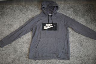 Sudadera Original con capucha de la marca Nike en color gris. Presenta un diseño moderno y cómodo. Sudadera comprada en Octubre de 2025, se ha usado un par de veces y no tiene ningún desgaste, está como nueva. Es bastante calentita. - Logo de Nike en el pecho. - Bolsillo tipo canguro. - Capucha con cordones ajustables.